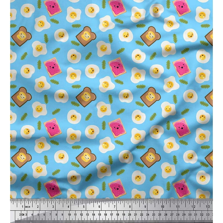 Soimoi Blue Polyester Crepe Fabric Omlet Bread Slice Food Print Sewing Fabric Yard 42 Inch Wide Walmart Com